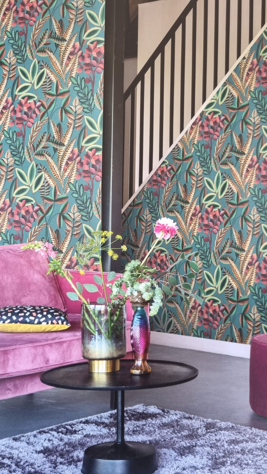 Florentine III con textura similar a la tela, la atención se centra en la amplia variedad de combinaciones de colores y de estampados botánicos.